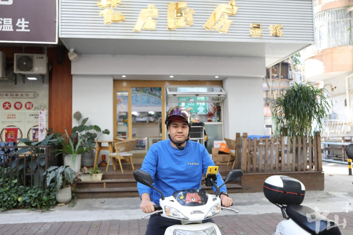 志军准备出发去送外卖订单天天盈。记者王云摄